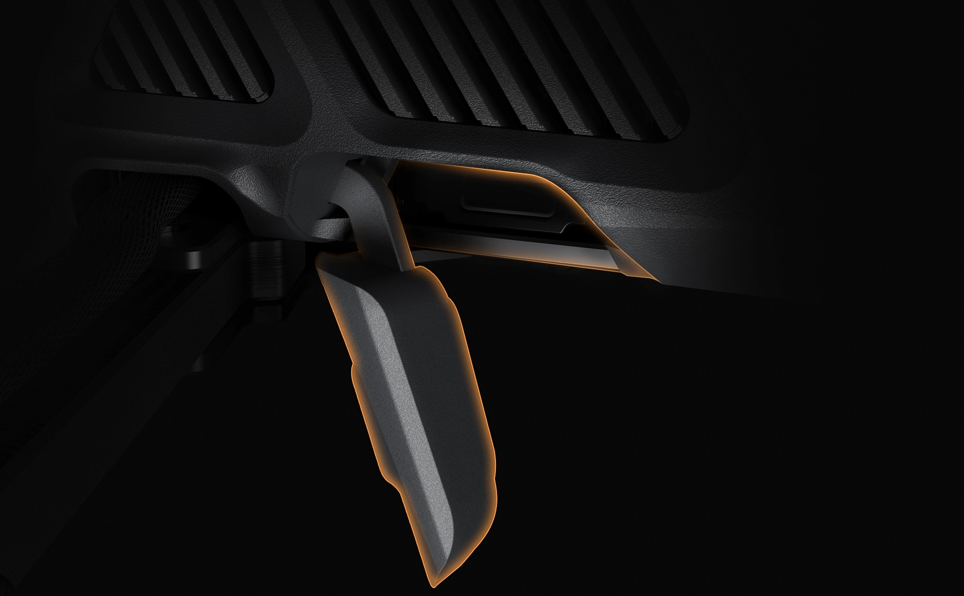 A seamless blend of cutting-edge technology & industrial aesthetics-cool side panels, streamlined design, mechanical texture, and futuristic appeal.