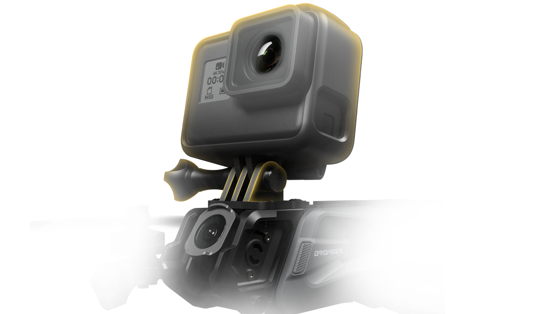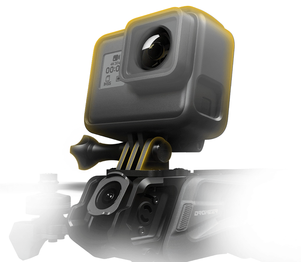 Lightweight aluminum alloy frame protects the camera, reducing crash damage.